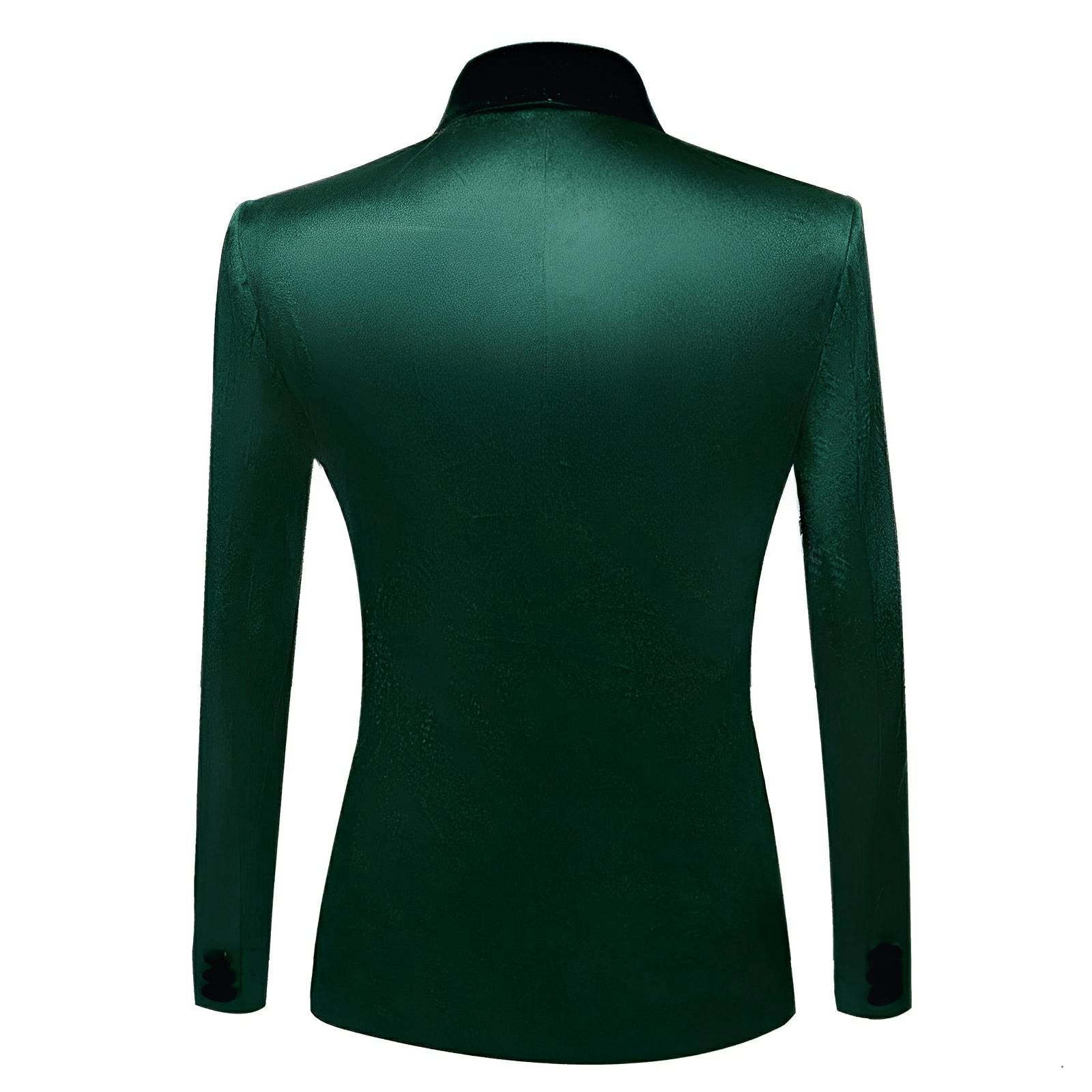 This elegant velvet blazer features a sleek lapel that is constructed from luxurious black satin, enhancing its formal appeal. It has a tailored fit with a single-button closure, complemented by two side pockets for added practicality. This piece is ideal for formal or fashion-forward events, adding a touch of opulence while maintaining a classic style. Be unforgettable.