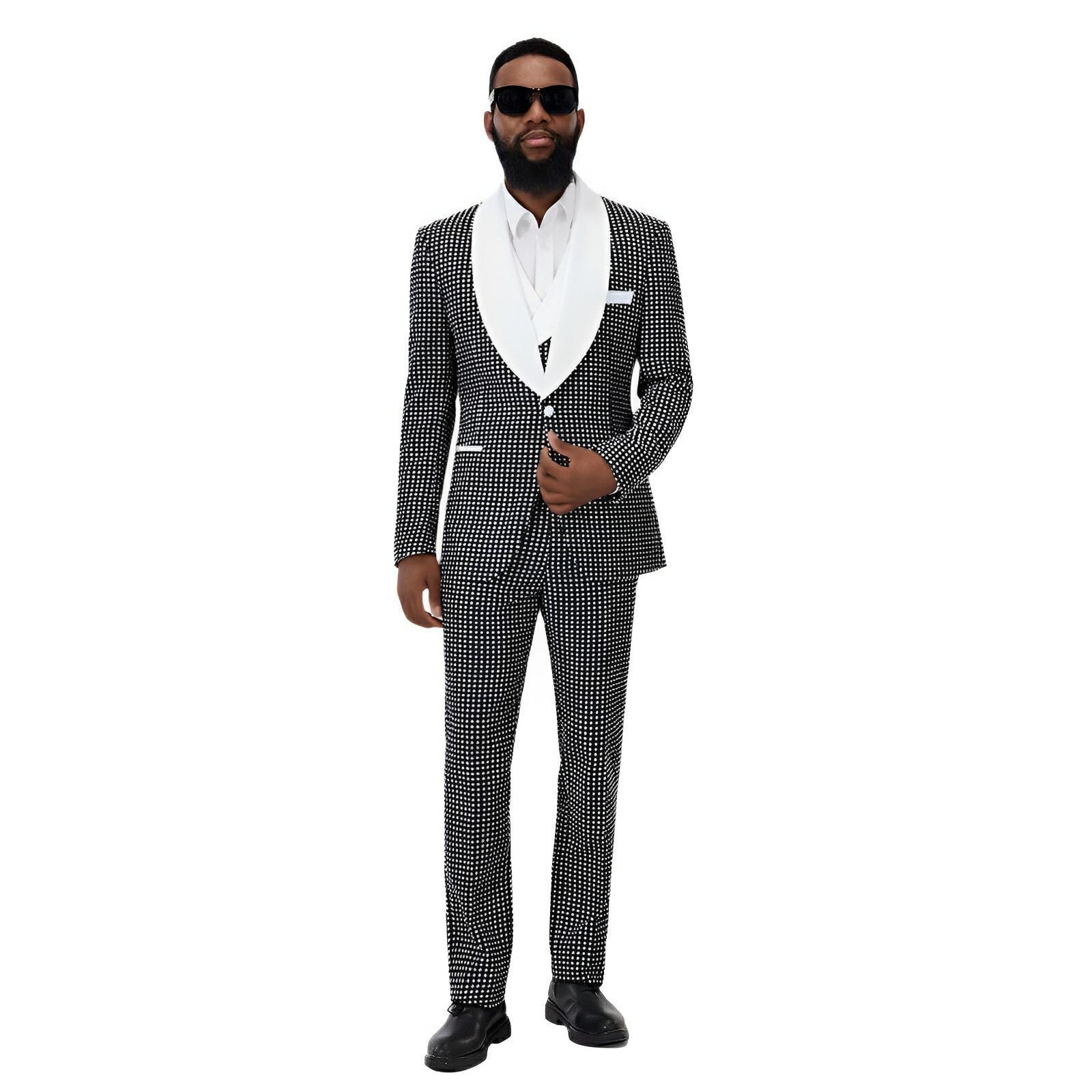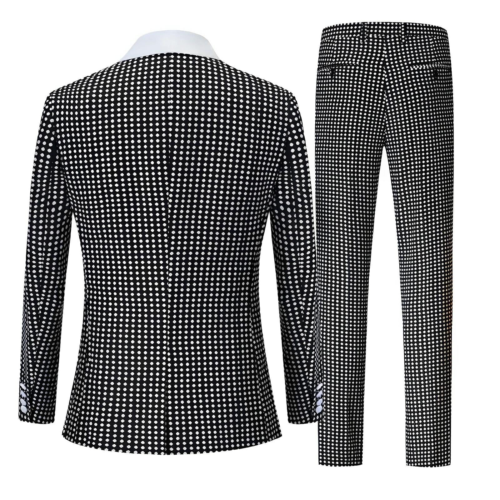 This elegant two-piece suit features luxurious craftsmanship and sophisticated exterior detailing, exuding a contemporary and stylish appeal. The fitted design includes sleek lapels and two front pockets with flaps, complementing the overall tailored look. This versatile piece is perfect for both formal and fashion-forward occasions, offering a modern take on traditional suiting. Command attention.