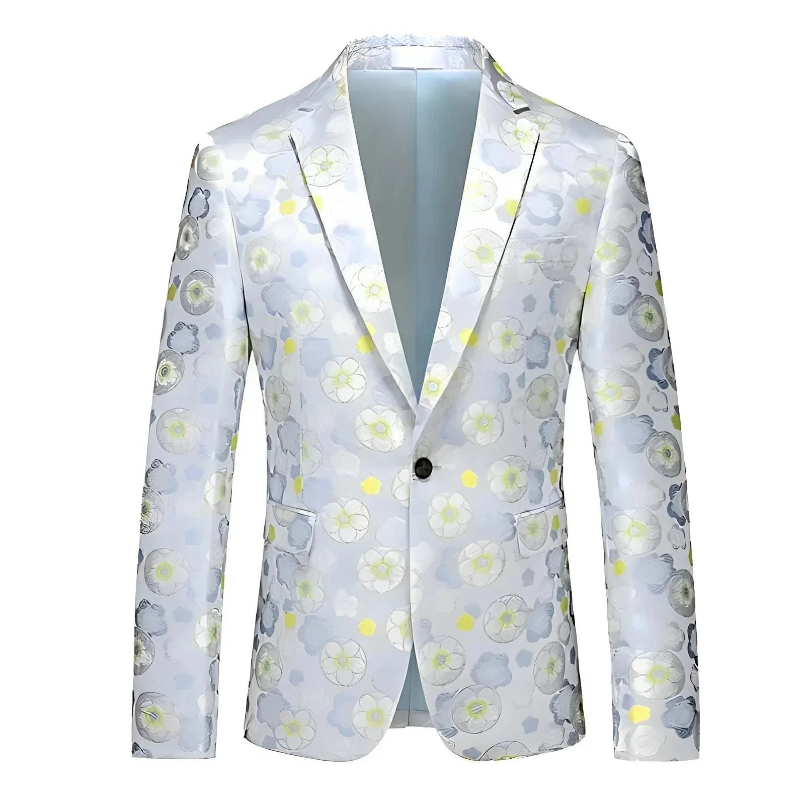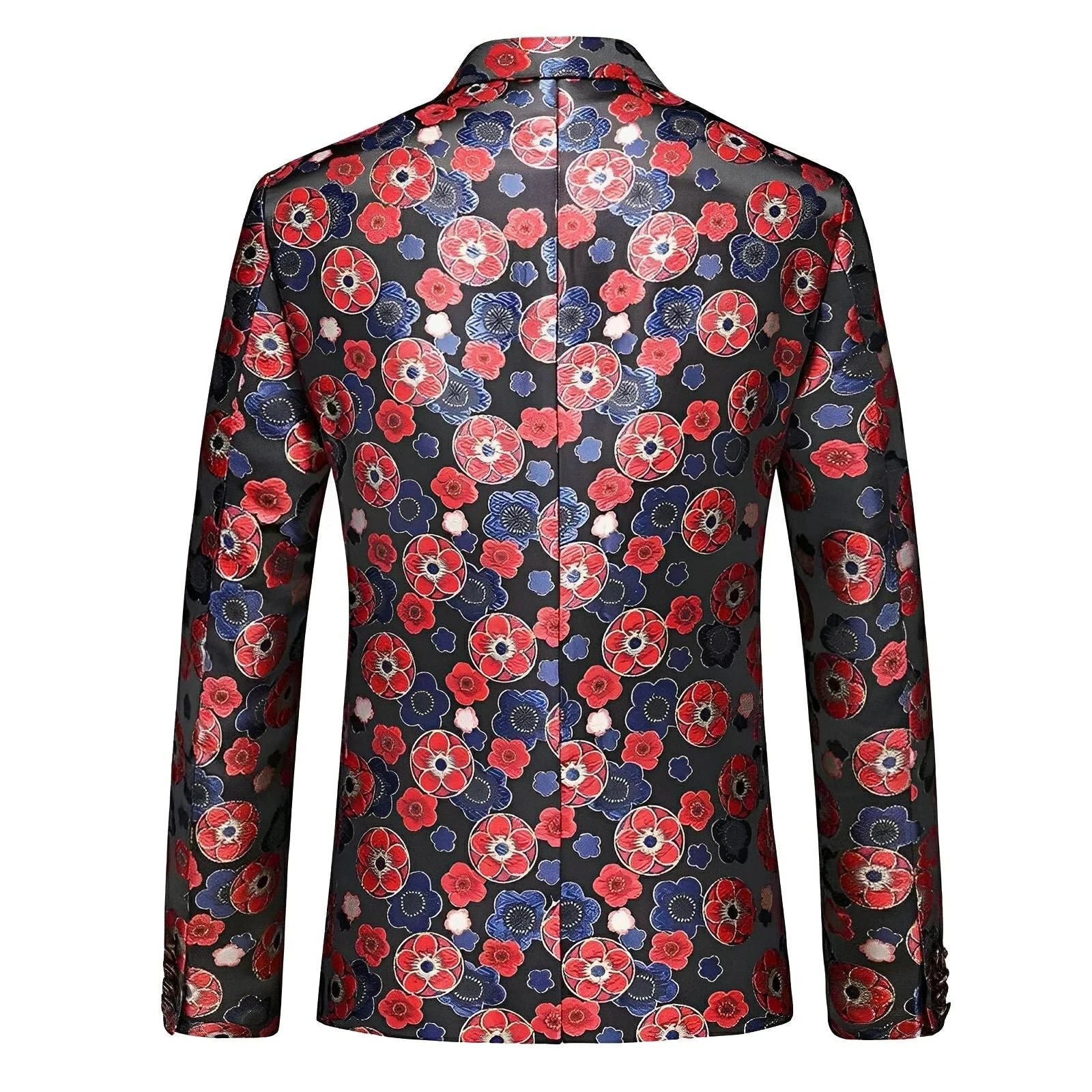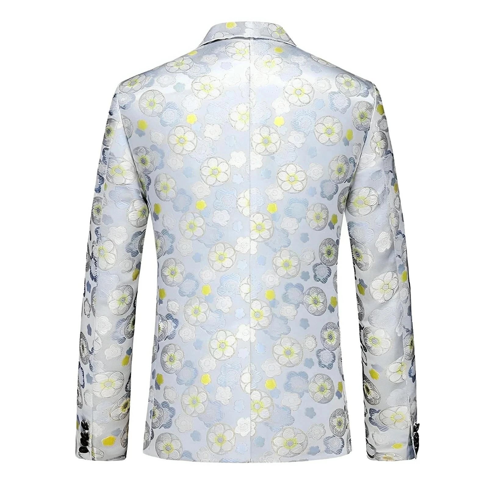 This structured blazer features luxurious craftsmanship and intricate floral detailing, exuding a contemporary and stylish appeal. The fitted design includes sleek lapels and two front pockets with flaps, complementing the overall tailored silhouette. This versatile piece is perfect for both formal and semi-formal occasions, offering a modern take on traditional suiting. Leave your mark.