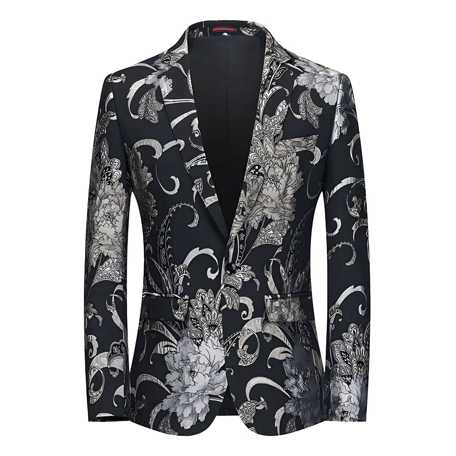 This sharp blazer features a rich textured fabric adorned with jacquard floral detailing, creating a striking visual contrast. The blazer has a tailored fit, with a sleek lapel that complements its luxurious silhouette. Ideal for formal or fashion-forward events, this statement piece combines traditional tailoring with bold styling for a memorable finish. Own the room.