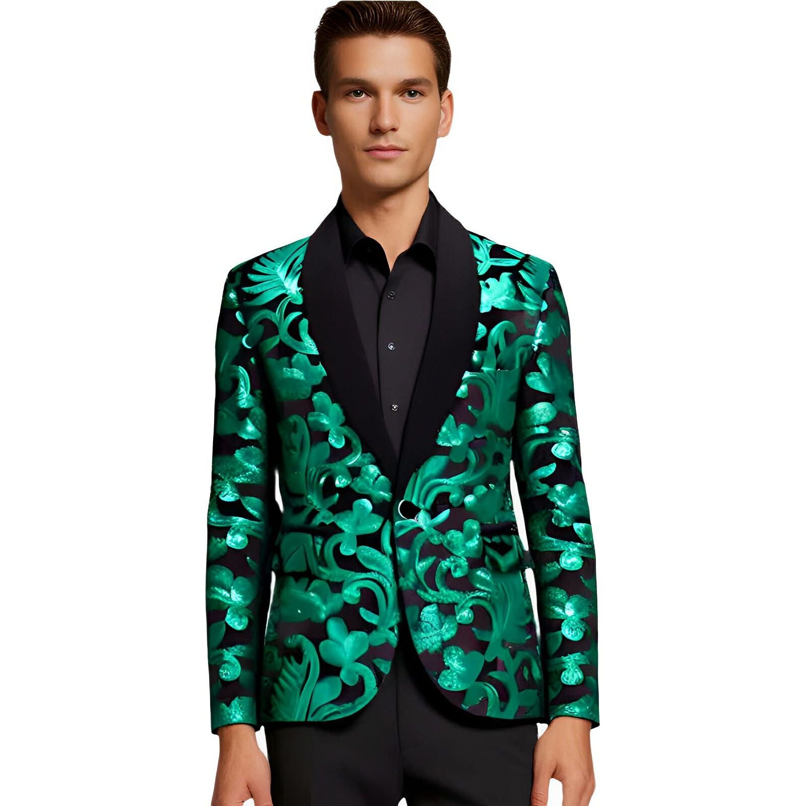 This elegant blazer features a rich fabric adorned with brilliant sequin crystals, creating a captivating visual effect. The blazer has a tailored fit, with a sleek lapel that complements its luxurious detailing. Ideal for formal or fashion-forward events, this statement piece combines traditional tailoring with bold, opulent flair. Own the moment.